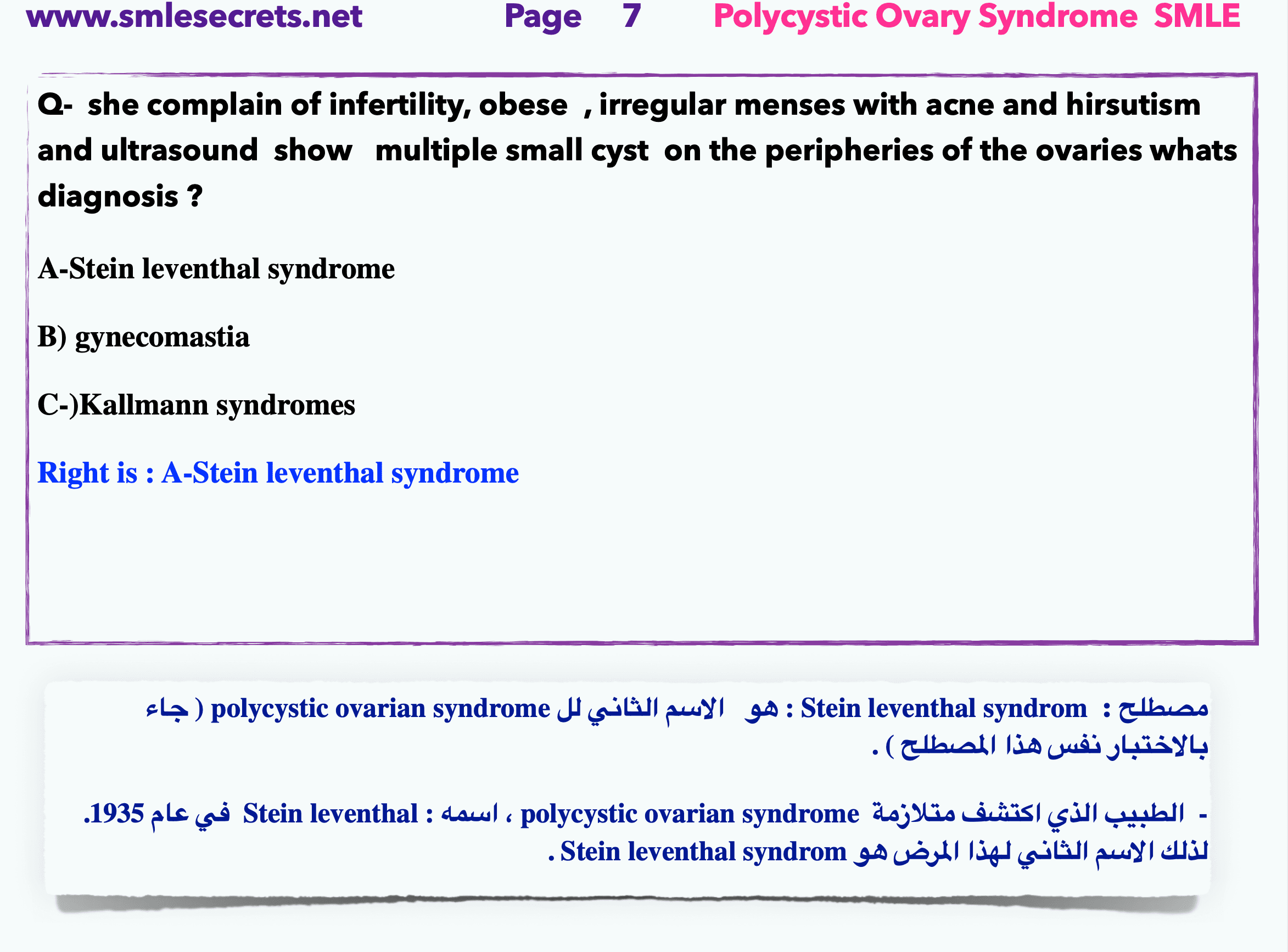 A-Stein leventhal syndrome