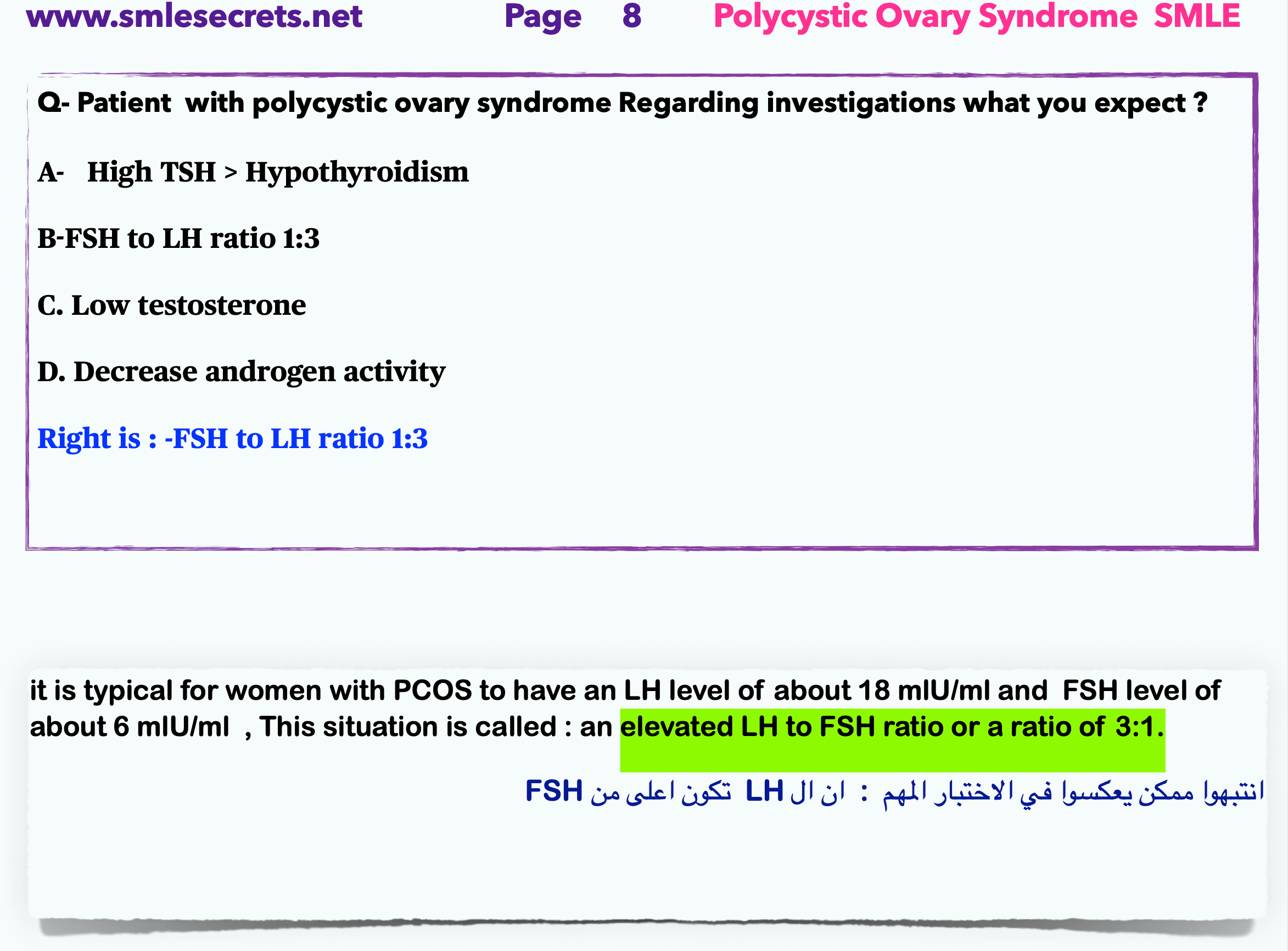Q7- Patient with polycystic ovary syndrome Regarding investigations what you expect