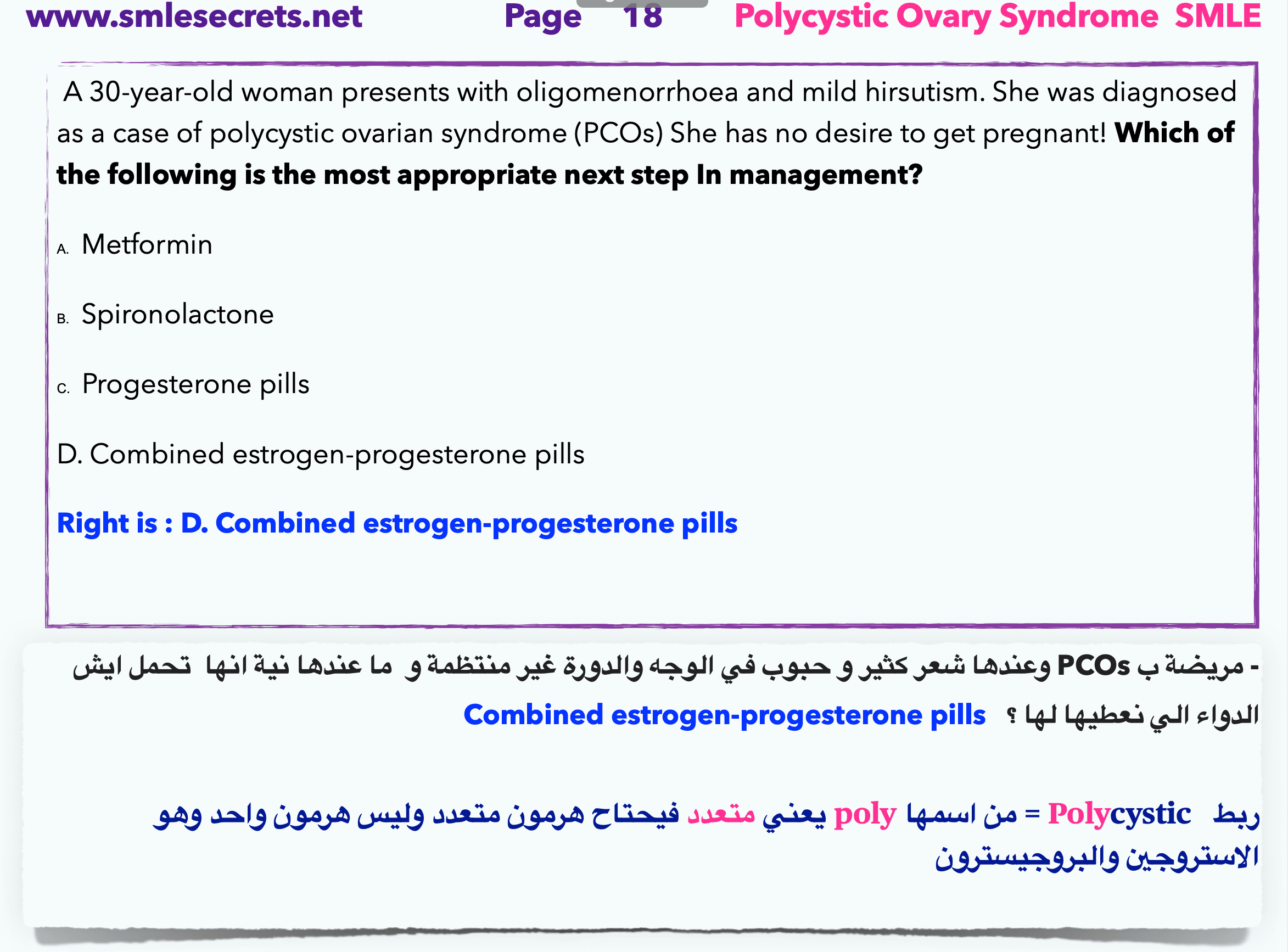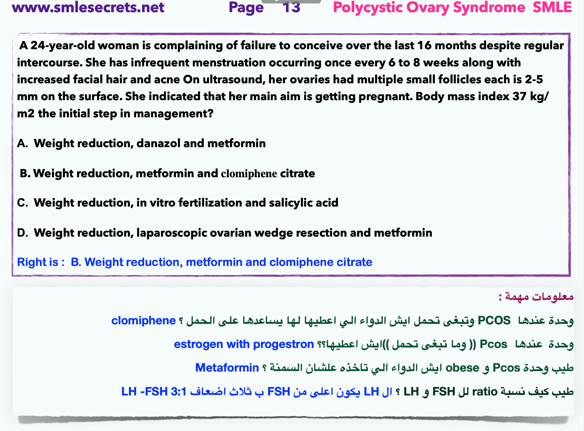Q12- polycystic ovary syndrome wants to become pregnancy, What to give